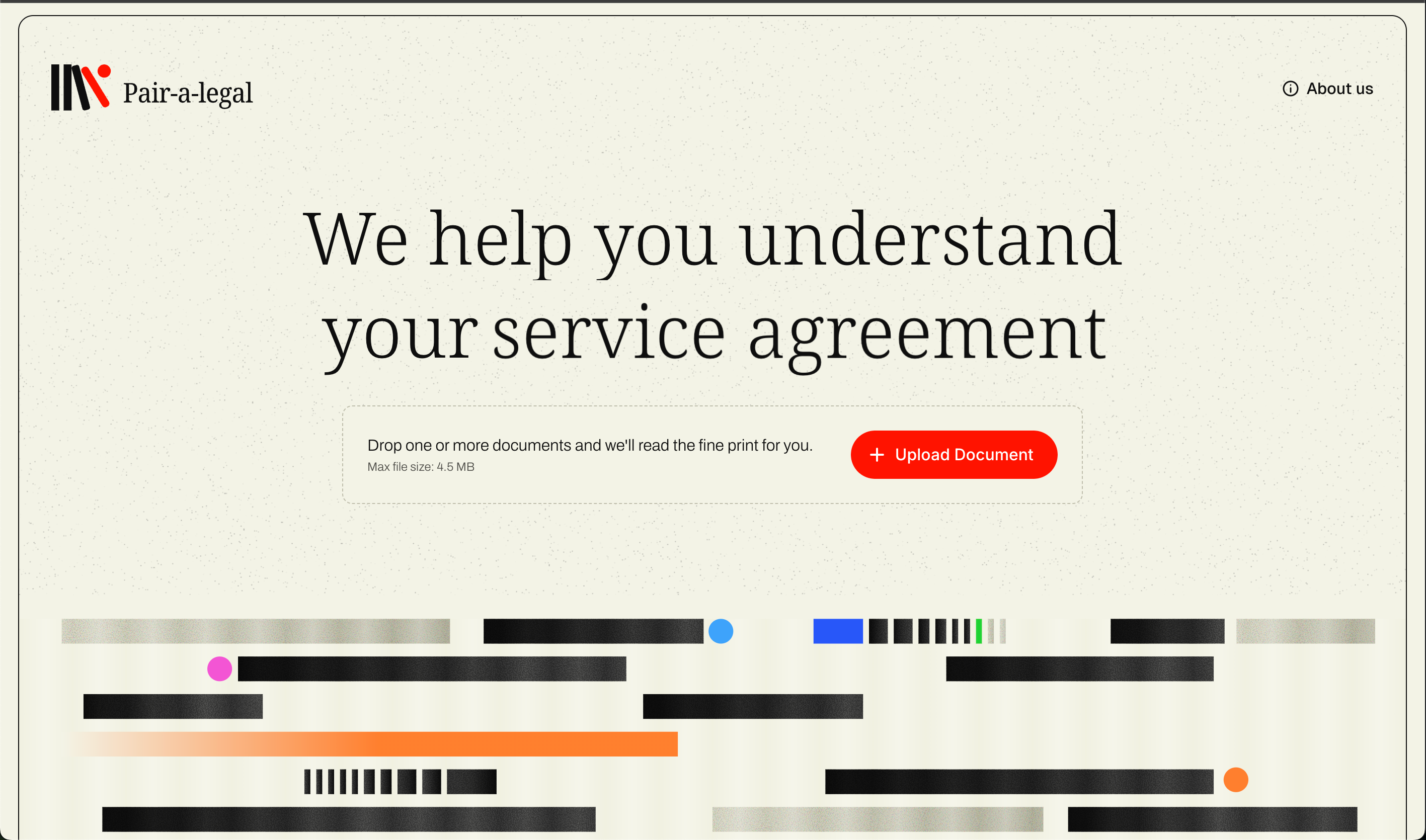 Pair-a-Legal helps you understand contracts without needing a law degree. Upload any contract—insurance, rental agreement, job offer, software subscription—and we'll break down what it means, empowering users to navigate contracts confidently and prepare effectively for legal review.