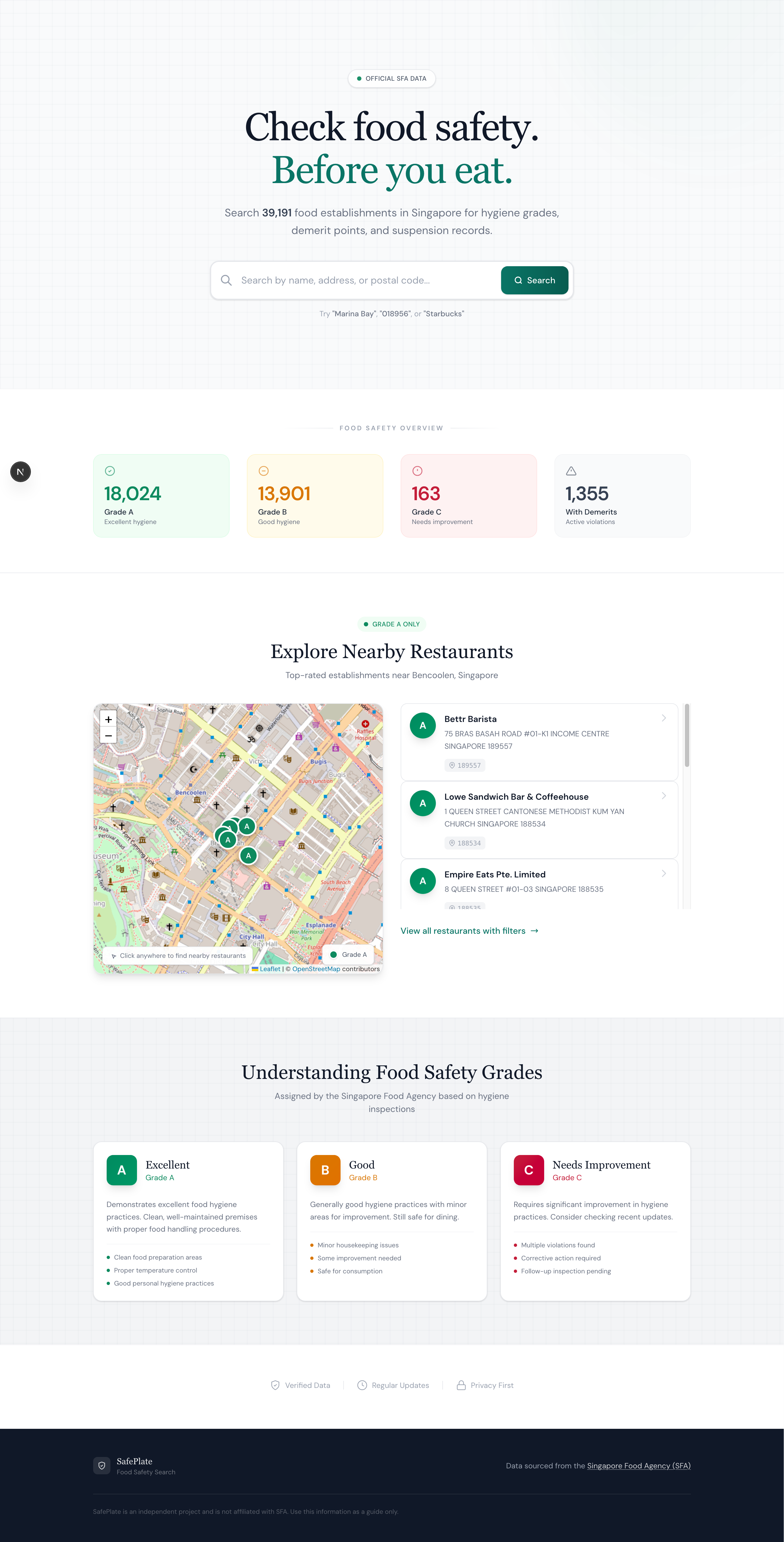 Another check before you pick where to eat. Search Singapore's 39,000+ food establishments for hygiene grades, demerit points, and suspension records, before you decide where to eat.