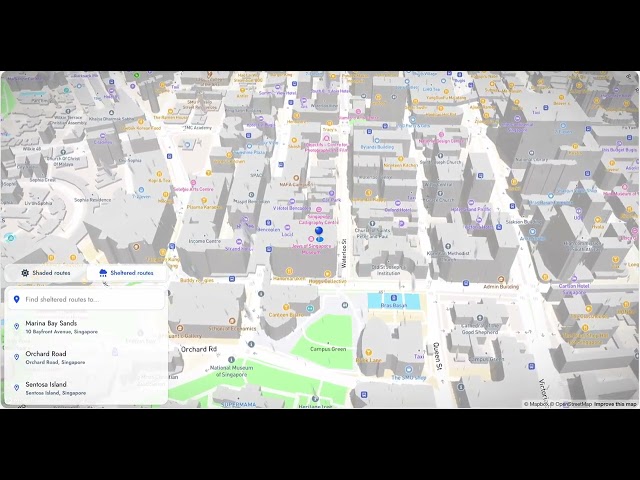 This is a deceptively simple problem. To answer it, we would have to accurately and comprehensively map out Singapore - every building, overhead bridge, underpass, and tree, as well as understand how it all changes according to environmental factors like the time of day, intensity of sun, cloud cover and others to extend this wealth of data to inform the choices our citizens, visitors and planners make in the country.